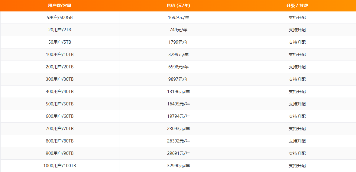 阿里云企业网盘的价格是什么?阿里云企业网盘采用“存储空间+用户数”双维度计费模式,价格从169元/年起,覆盖从小型团队到大型企业的多样化需求。
