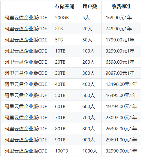 阿里云企业网盘多少价格?阿里云企业网盘价格主要根据存储容量+用户数而定,具体价格如下: