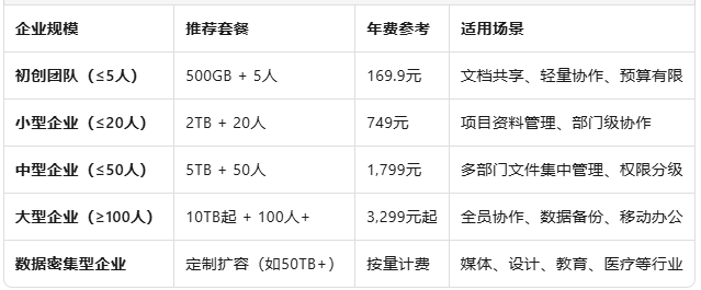 1、初创公司:选择500GB基础版,利用免费试用期验证功能,后续通过代理商升级至标准版。