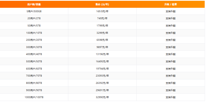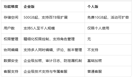 3、大型企业/集团公司:可选择20TB以上套餐,支持数百人同时使用,满足大规模数据管理与安全合规需求。