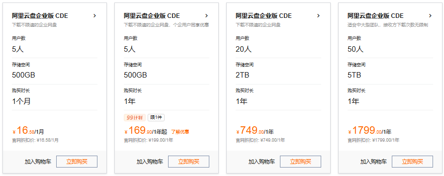阿里云盘企业版费用:阶梯式套餐,最低169.9年/起