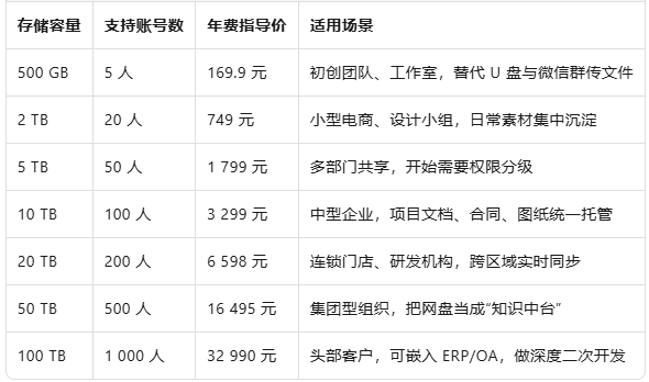 1、先估“人”再估“盘”:账号数往往比存储更早触顶,建议预留20%人员额度。