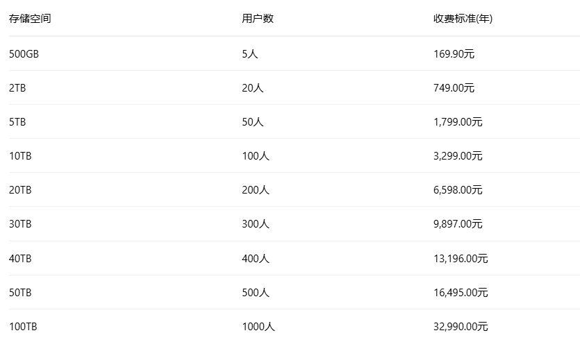 阿里云企业网盘采用“存储容量+用户数”双维度计费。所有套餐均不限速、支持多端同步、在线协作与细粒度权限管理,企业可按需横向扩容或增购账号,无需一次性投入大量预算。
